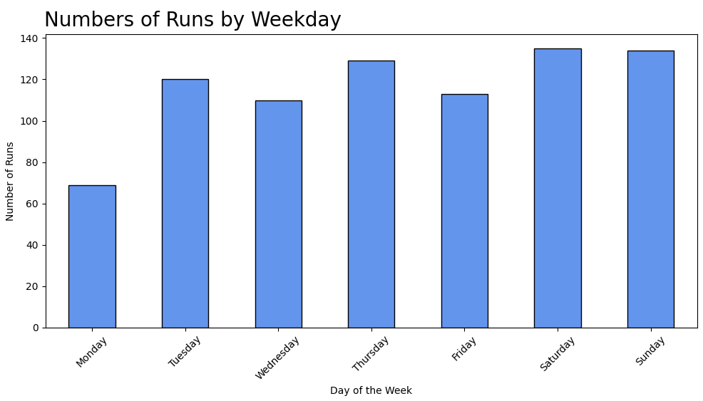 (3) Runs by Day of the Week: Bar chart revealing preferred running days